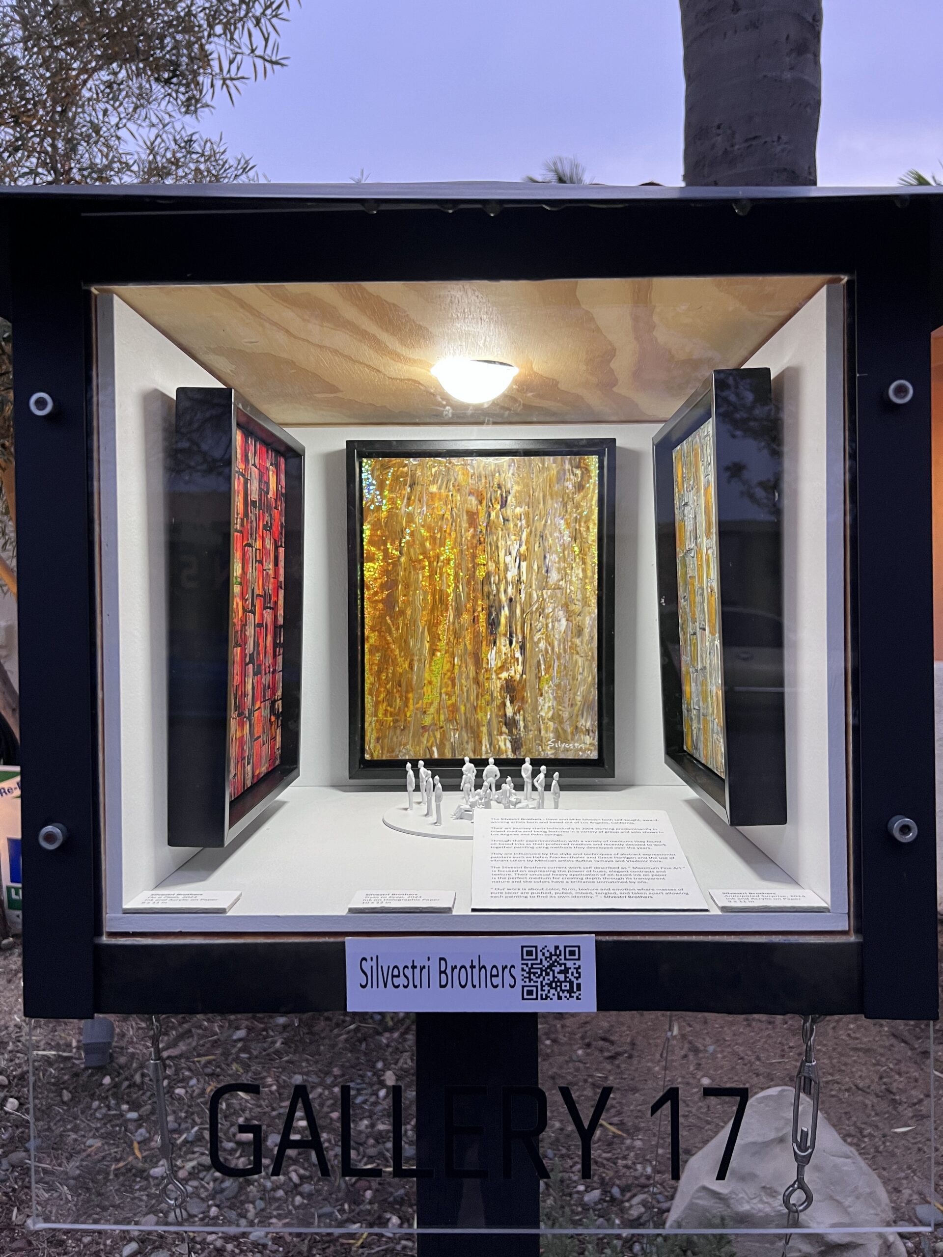 About the gallery: Gallery 17 is part of the Wrigley “Arts District” on Eucalyptus Ave. in Long Beach. Gallery 17 is also the first of the micro-galleries to be installed by Dave and Carol Clark.